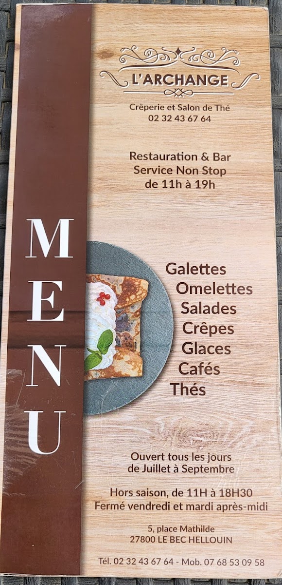 Whether you're in the mood for a savory galette, a decadent crepe, or a sweet waffle, the menu at L'archange Le Bec-Hellouin offers something to satisfy every craving.